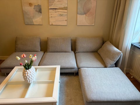 Fin grå soffa med divan