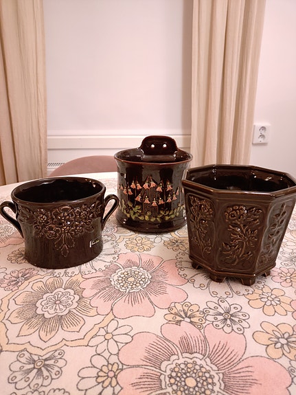 Tre bruna krukor