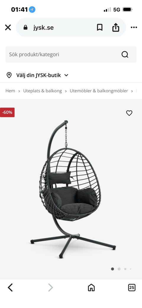 2 000 krHängstol uteplats svart rottingimitation med stativ OCH 3 KUDD UPPSÄTTNINGARUppsala6 dagarLägg till i favoriter.