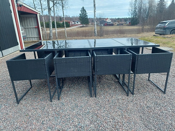 15 000 krUtemöbler, stort parasoll, bord och 6 stolar med svarta dynor.Uppsala10 aprLägg till i favoriter.