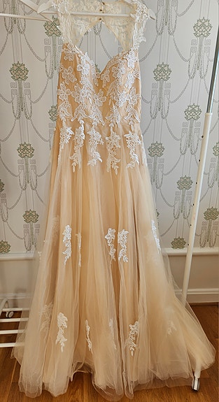750 krfestklänning lång beige satin spets dam MStl. MTierp10 marKöp nuLastbil i rörelseKan skickasLägg till i favoriter.