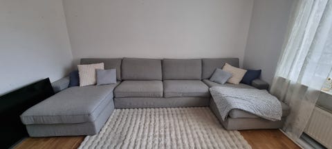Stor mörkgrå soffa med divan
