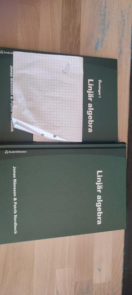 500 krLinjär Algebra + Övningsbok Jonas Månsson Patrik NordbeckMorgongåva28 oktLägg till i favoriter.