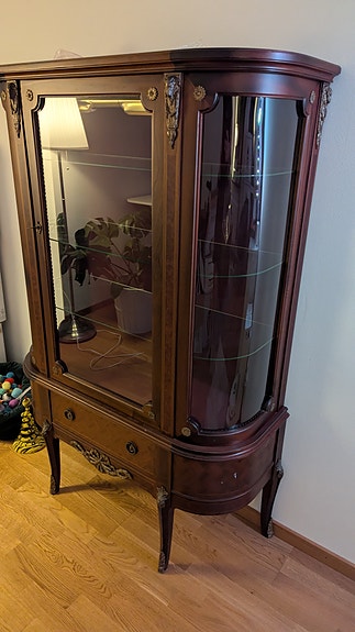 4 500 krElegant vitrinskåp i rokokostil – böjt glas, belysning och intarsiaUppsala12 marLägg till i favoriter.