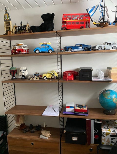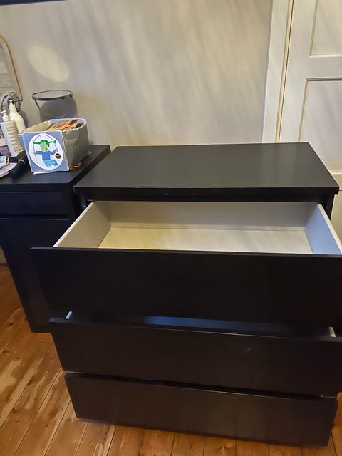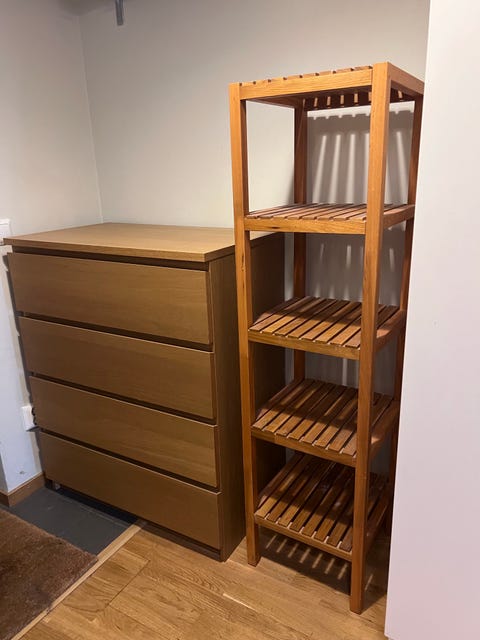 3 hyllor och lådförvaring