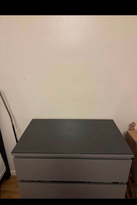 Stilren svart byrå med glasskiva