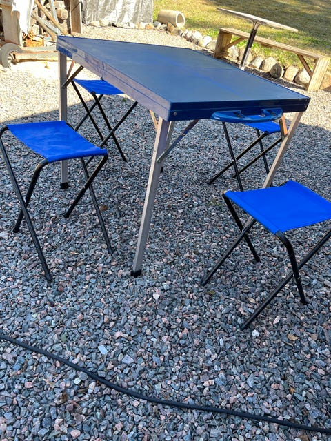150 krHopfällbart campingbord med 4 blå pallarTrosa, Södermanland3 dagarLägg till i favoriter.Öppna annons