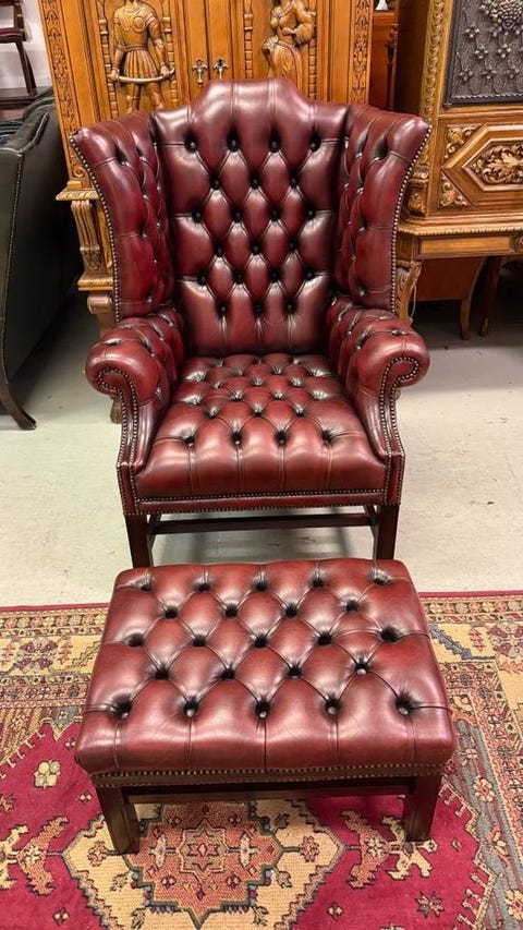 11 000 krEngelsk Chesterfield öronlappsfåtölj med fotpallÅkers Styckebruk5 dagarMirek - AntikFynd M&ALägg till i favoriter.