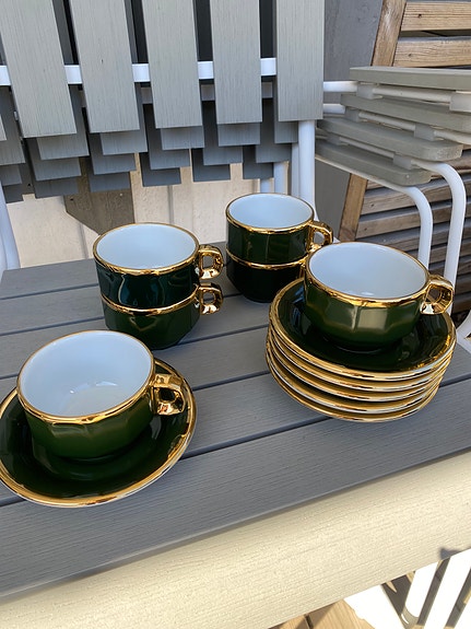 1 200 krKaffekoppar med fat mörkgrön porslin gulddekorKolmården10 aprKöp nuLastbil i rörelseKan skickasLägg till i favoriter.