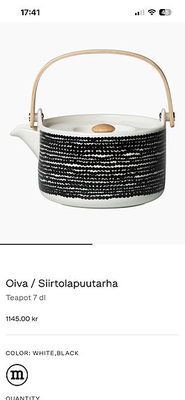 280 krMarimekko SIIRTOLAPUUTARHA tekanna, porslin med trähandtag MarimekkoNorrköping5 dagarLägg till i favoriter.