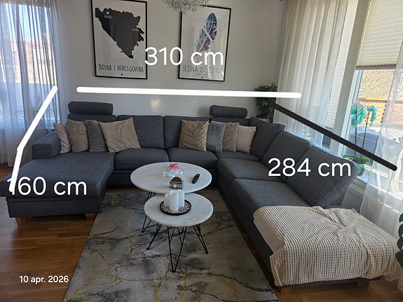 Hörnsoffa tyg grå 310x284 cm