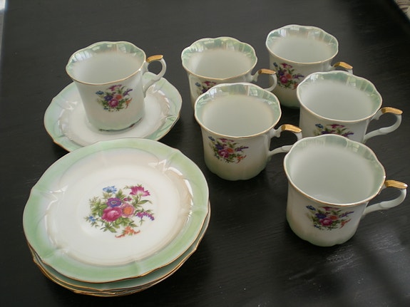 125 krPorslin 6 kaffekoppar med 5 fat blommigt mönster grönvit. ÄldreLinköping21 marKöp nuLastbil i rörelseKan skickasLägg till i favoriter.