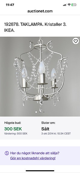 300 krKristallkrona taklampa, 3 ljus, silver.Ny. IKEAHuskvarna41 minLägg till i favoriter.Öppna annons