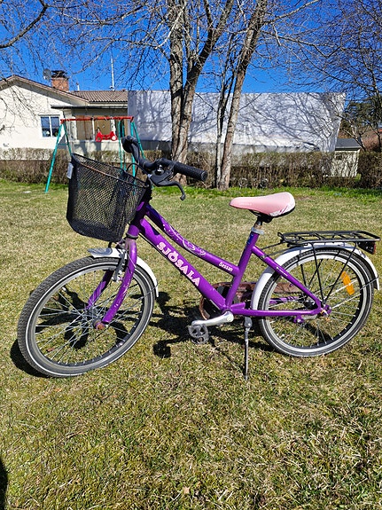 Sjösala barncykel 20" lila med korg och pakethållare