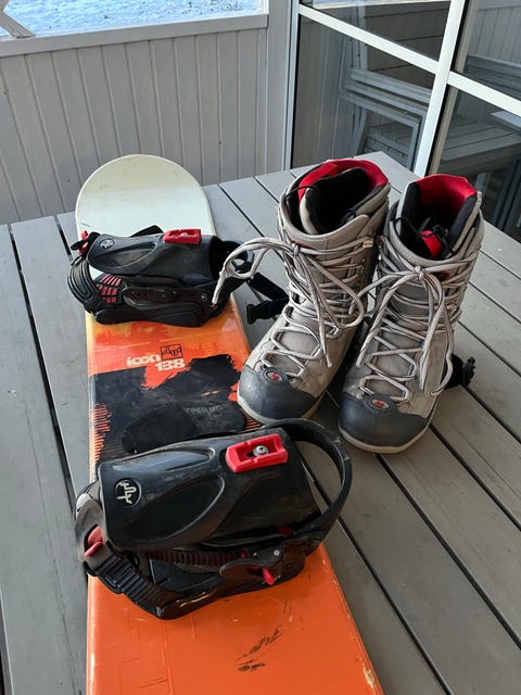 Snowboard, skidor, boots