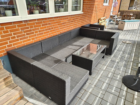 9 000 krSvart hörnsoffa i konstrotting med bord för uteplatsVäckelsång37 minLägg till i favoriter.Öppna annons