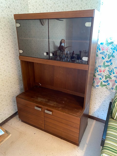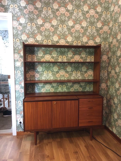 Teakhylla med skåp och lådor