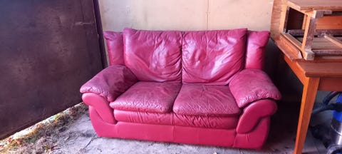 Soffa 2-sits röd läder