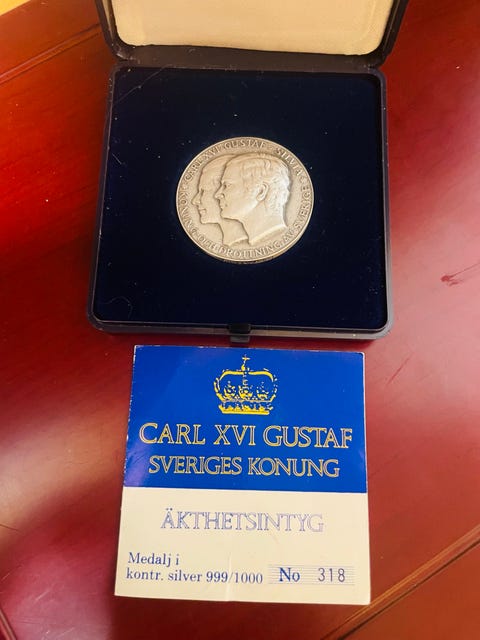 2 100 krMinnesmedalj Carl XVI Gustaf trontillträde 1973 med äkthetsintygKalmar2 febLägg till i favoriter.