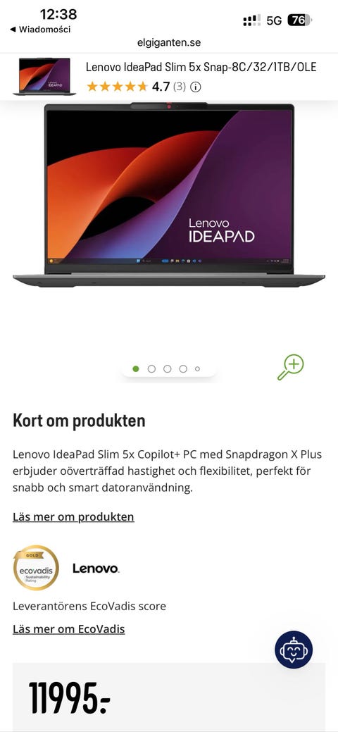 7 500 krLenovo Slim 5 OLED 32GB 1TB Snapdragon X Plus + case LenovoOlofström2 dagarKöp nuLastbil i rörelseKan skickasLägg till i favoriter.