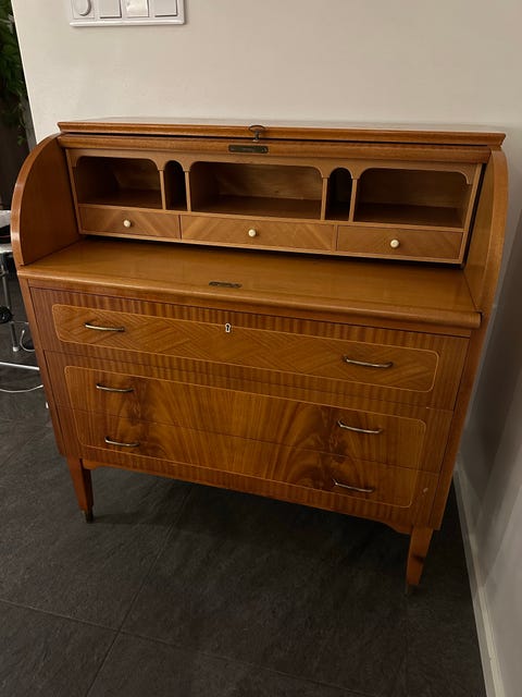 Sekretär i trä med lådor