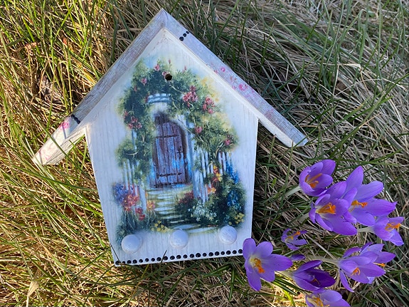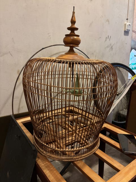 Vacker fågelbur i trä