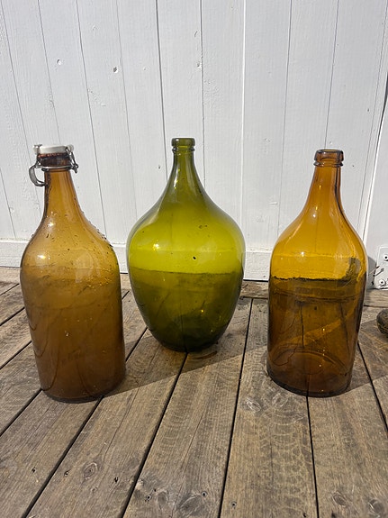 3 stora glasflaskor