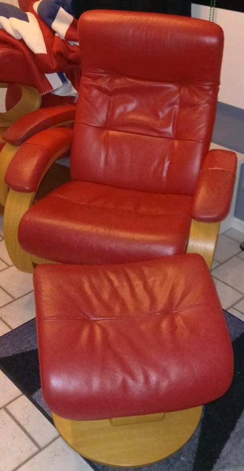 Röda skinnfåtöljer