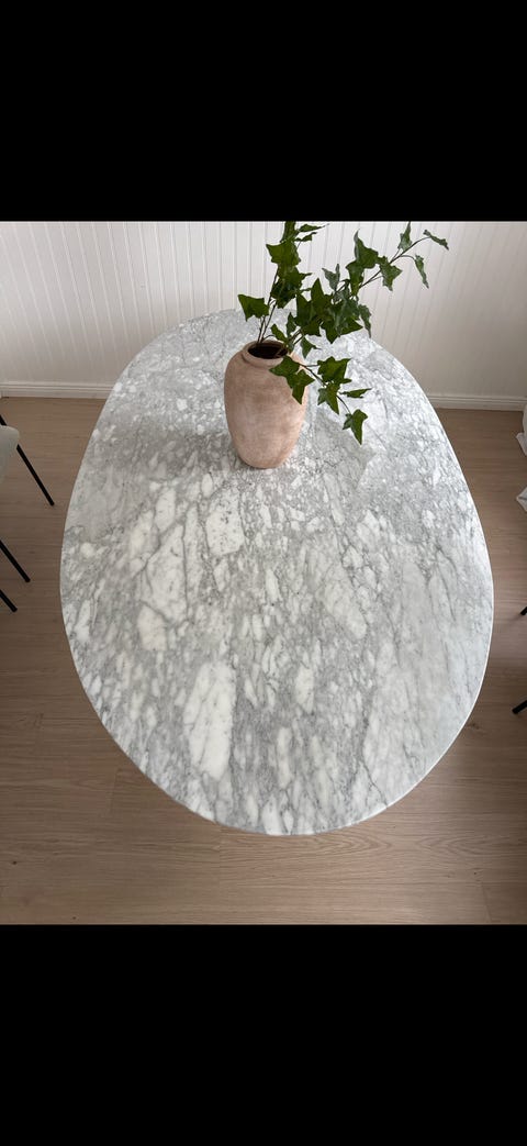 Marmorbord med fem stolar