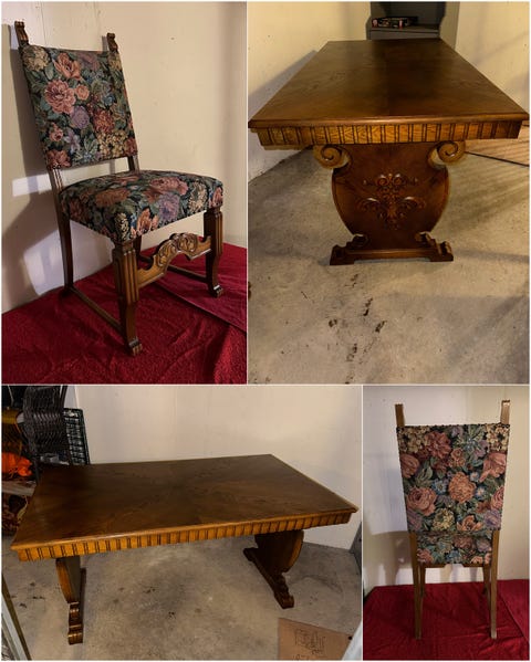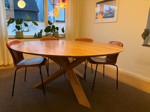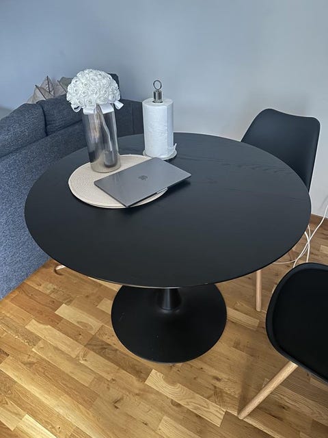 3 000 krMatsalsbord i ek med 4 stolar & iläggsskiva. Finbord. 1940-talet.Helsingborg8 decLägg till i favoriter.
