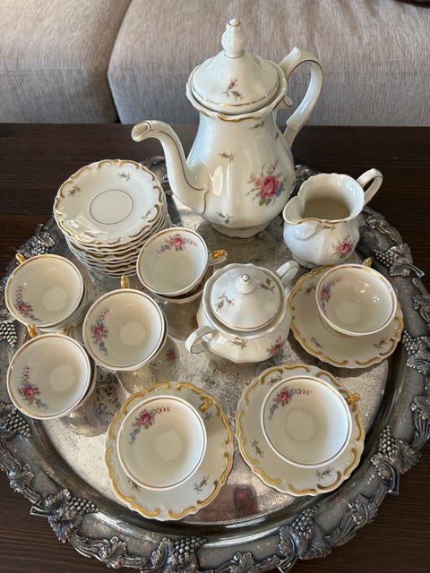 150 krPorslins mockaservis med rosdekor och guldkant.Mölle23 timKöp nuLastbil i rörelseKan skickasLägg till i favoriter.