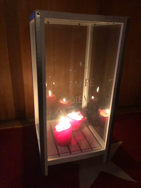 100 krljuslykta med text Carpe Diem på glaset. Den är 50 cm hög och 25x25Viken1 dagLägg till i favoriter.