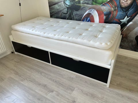 BortskänkesIKEA säng med förvaring vit och svart. Inkl resårmadrass IKEAEslöv8 febLägg till i favoriter.