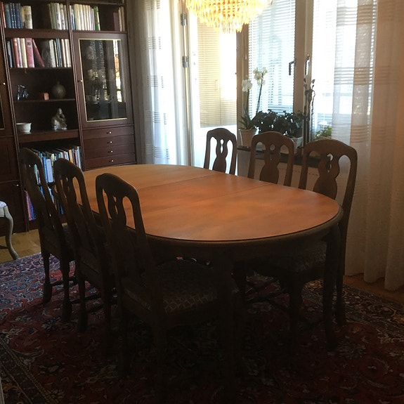 11 500 krMatgrupp Englesson bord 100x199-290 +6 stolar och iläggsskivorHjärup6 aprLägg till i favoriter.