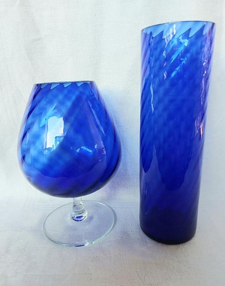2 st blåa vaser i glas