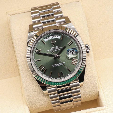 459 000 krRolex Day-Date 40 | Olivgrön | 18k Vitguld | 24 | Svensksåld RolexMalmö5 dagarImpressive WatchesLägg till i favoriter.