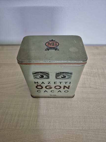 1 000 krMazetti Ögon Cacao – plåtburk + oöppnad originalkartong (1945)Lund20 febLägg till i favoriter.