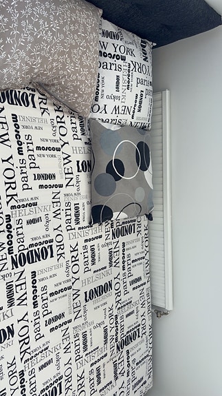 Sänggavel grå textil