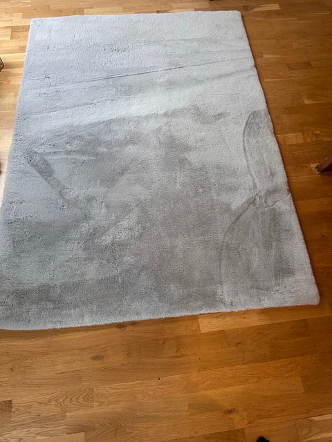 Vit matta med lång lugg