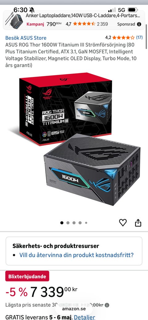 5 000 krAsus TUF Gaming AMD Radeon RX 7800 XT 16GB grafikkort(OC edition)Stehag1 dagKöp nuLastbil i rörelseKan skickasLägg till i favoriter.Öppna annons
