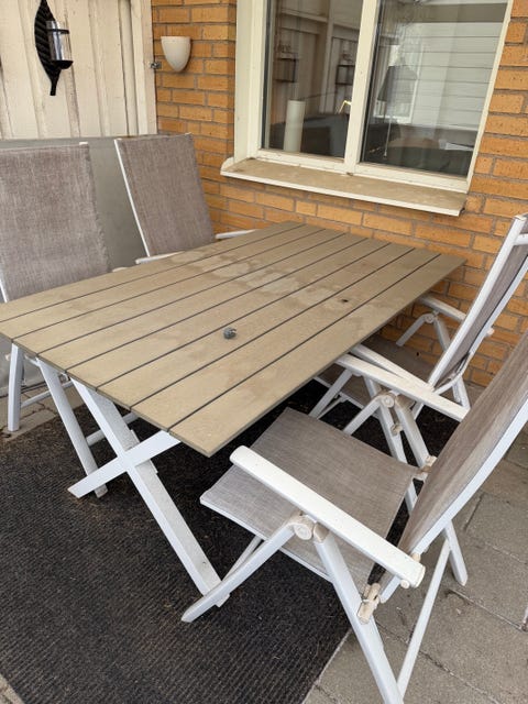 2 500 krMatgrupp utebord med glasbordsskiva och 4 stolar vit gråSimrishamn6 febLägg till i favoriter.