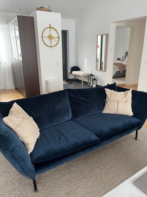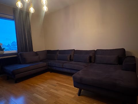 6 000 krStor blå sammet soffa med divan. Kuddarna är avtagbara och tvättbaraMalmö21.12.25Lägg till i favoriter.