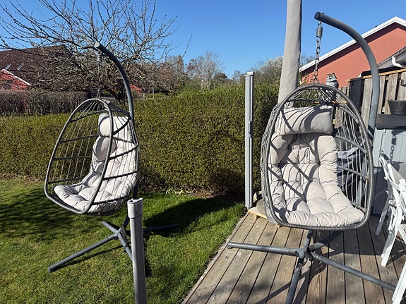 4 000 krHängstolar till uteplats med stativ och dynorLerberget17 minLägg till i favoriter.Öppna annons