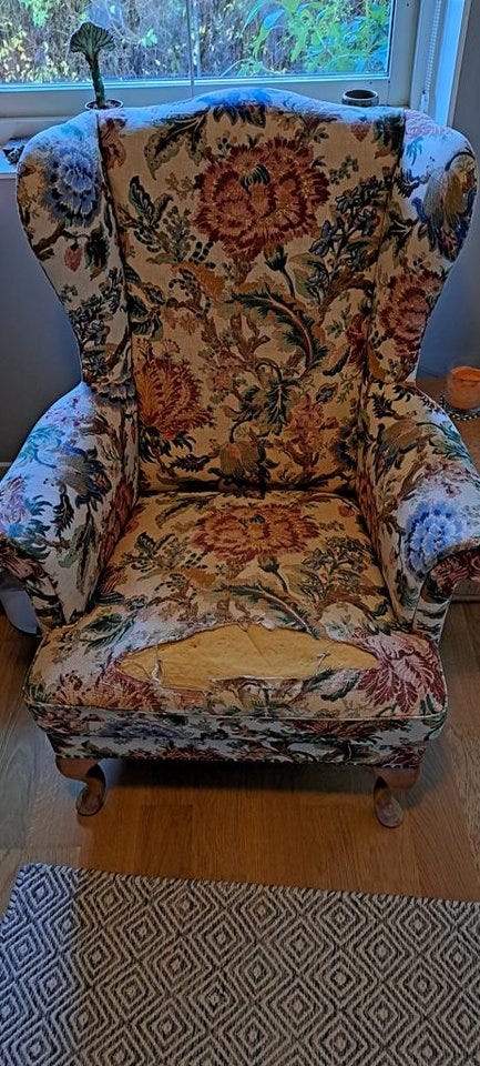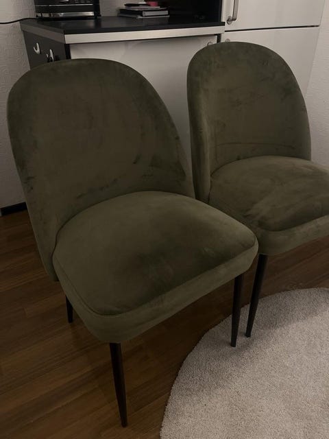 Fotölj och sittpuff i härligt grön lyxig grön sammet