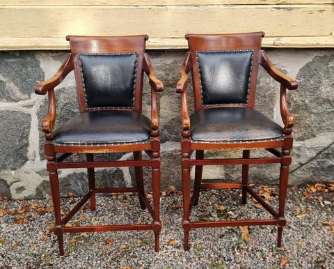 2 St Eleganta Barstolar i vackert Trä och Skinn