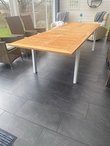 3 500 krMatgrupp utomhus träbord med 4 stolar grå dynorGlommen6 dagarLägg till i favoriter.Öppna annons