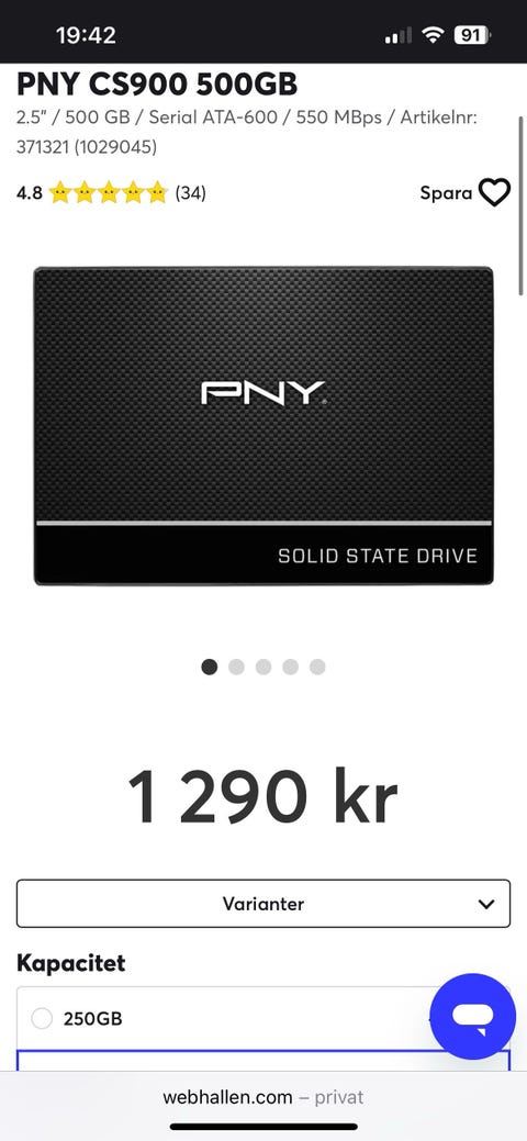650 krPNY CS900 500 GB SSD nyskickHalmstad11 aprKöp nuLastbil i rörelseKan skickasLägg till i favoriter.