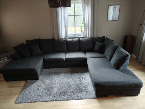 Mörkgrå stor tygsoffa