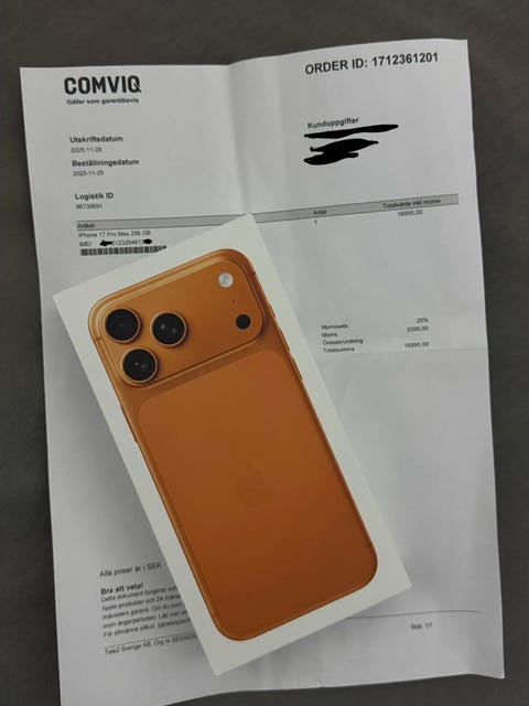 18 500 krIPHONE 17 PRO MAX 512 GB HELT NY 512 GB AppleGöteborg19 timKöp nuLastbil i rörelseKan skickasLägg till i favoriter.