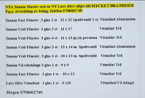 Fönsterparti 90x210 Ny